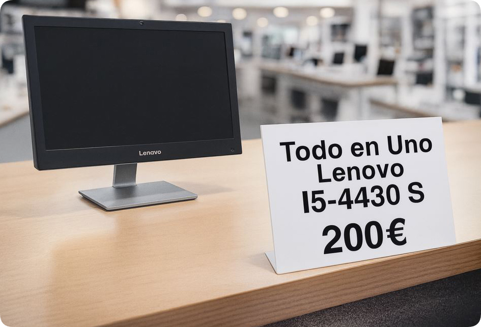 Ordenador Lenovo ThinkCentre todo en uno. Procesador Intel® Core™ i5-4430S CPU @ 2.70GHz - 16 GB de RAM - Disco SSD 1 Tb - 128 GB de tarjeta gráfica - Windows 11 Pro - DVD grabadora dual - USB 3.0 Y 2.0 - Webcam - Tarjeta Red , WIFI y Bluetooth -- Con Windows 11, Office 2021, Editor y lector PDF, WinRAR, etc.